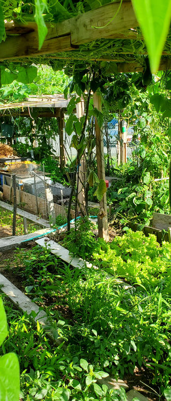 Originally called La Grande, they changed their name and began expanding in 2009. From a mostly empty lot they transformed the space with hand tied trellises crafted from repurposed materials to hold different melons, beans, and chayote. They save food for the non-growing season and seeds to continue growing their staples.